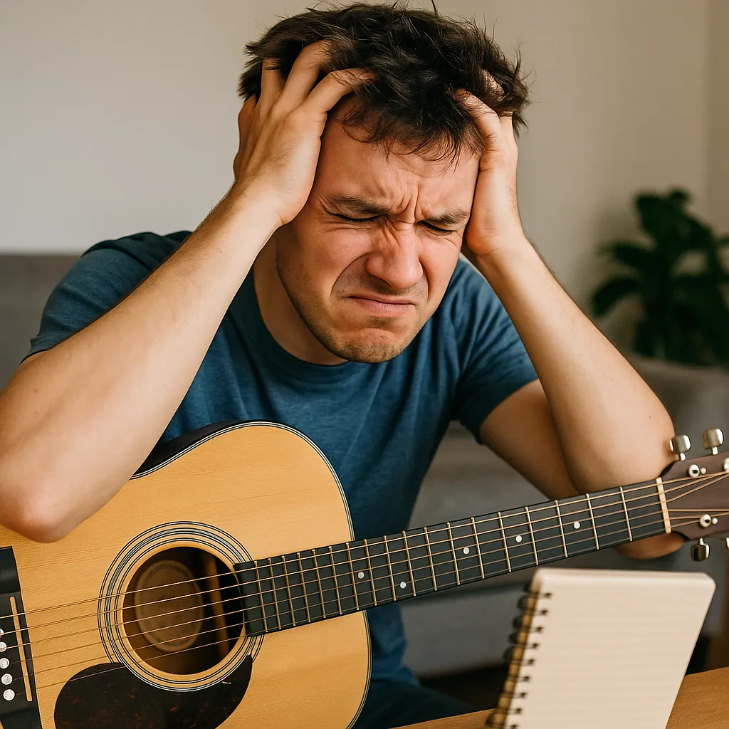 Berikut beberapa masalah yang sering dihadapi: latihan yang monoton dan membosankan, progres yang sangat lambat, teori musik yang rumit dan membingungkan, chord yang sulit untuk jari pemula, teknik yang tidak jelas, frustrasi dan kehilangan motivasi, dan pemborosan waktu dengan latihan yang tidak efektif.